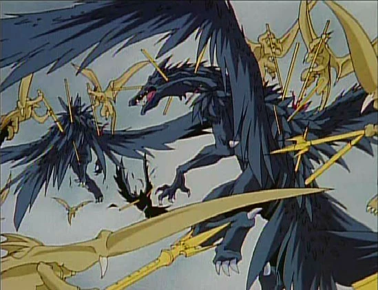 Важно помнить, что авторство на них принадлежит создателям третьего сезона, а не автору вселенной. И в отличие от других привнесённых новых рас и персонажей из аниме, их геноцид входит в противоречие с основным повествованием. Добавленный для нагнетания драмы, он начисто подрывает сам базис мироустройства - дихотомию добра и зла, на основе которой Повелительница Кошмаров создавала миры. В новелле золотые драконы, будучи светлыми существами и служителями богов, почитали жизнь, как таковую. Ставя её в приоритет даже над войной с мазоку. Однако, внезапно в 3-м сезоне выясняться, что служители шинзоку – обожающие повоевать параноики, вырезающие несогласных по надуманной причине. А мазоку, Зелос по приказу госпожи, спасает мир потому что... Да прост. Чтобы низвести весь смысл противостояния Цефеида с Шабранигдо до чёрно-серой морали.